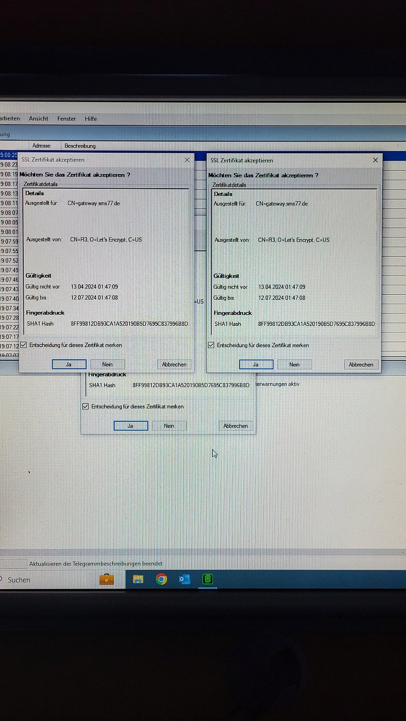 Der Zertifikatsfehler, mit den genannten Folgen, erscheint nun bei jeder Alarmierung
